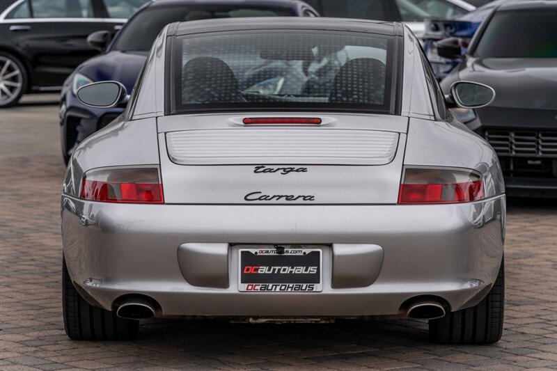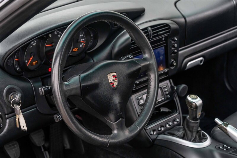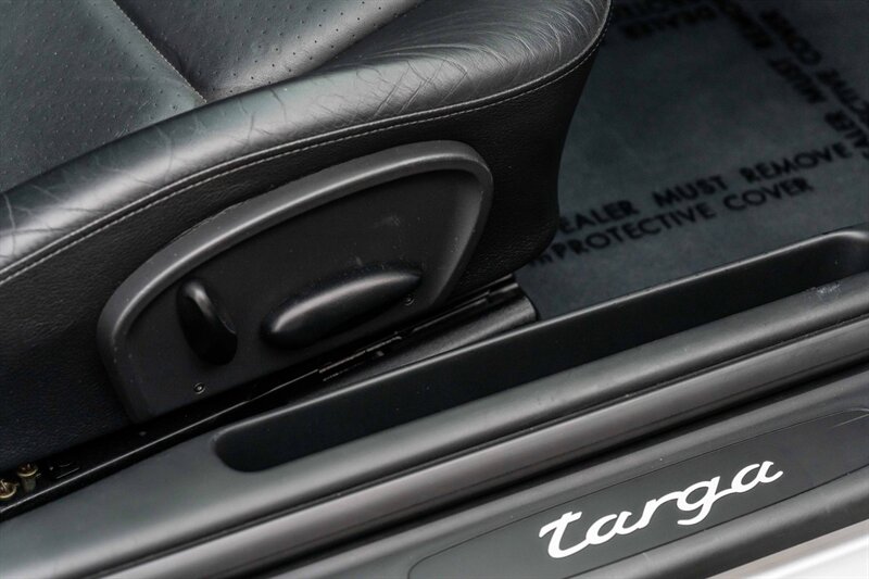 2003 Porsche 911 Targa with 6sp Manual Transmission ** 3.6L flat 6 engine producing 315 HP ** Artic Silver Metallic on Black Leather Seats ** Heated Front Seats ** Carbon/Aluminum Shift Lever/Brake Handle ** 18" Light Alloy Carrera Wheels ** Wheel Caps W/Colored Porsche Crest ** BOSE HIGH END SOUND PACKAGE - 6 channel amp w/equalization - Bose Two-State Modulation (TSM) switching 100-watt amp - 5x25 watt linear amps - 11 high performance speakers ** Porsche Stability Management System stability control system w/ABS - anti-slip regulation -automatic brake differential