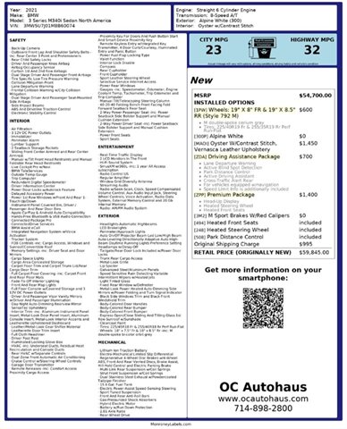 2021 BMW M340i with 41K miles ** Alpine White on Oyster W/Contrast Stitch, Vernasca Leather Upholstery ** DRIVING ASSISTANCE PACKAGE - Lane Departure Warning - Active Blind Spot Detection - Park Distance Control - Active Driving Assistant - Cross-Traffic Alert Rear - Speed Limit Info is additionally included ** PREMIUM PACKAGE - Head-Up Display - Heated Steering Wheel - Heated Front Seats ** M double-spoke cerium gray wheels ** M Sport Brakes W/Red Calipers ** Heated Front Seats ** Heated Steering Wheel ** Park Distance Control